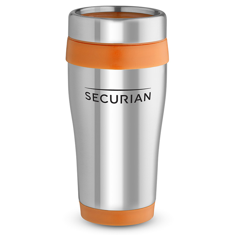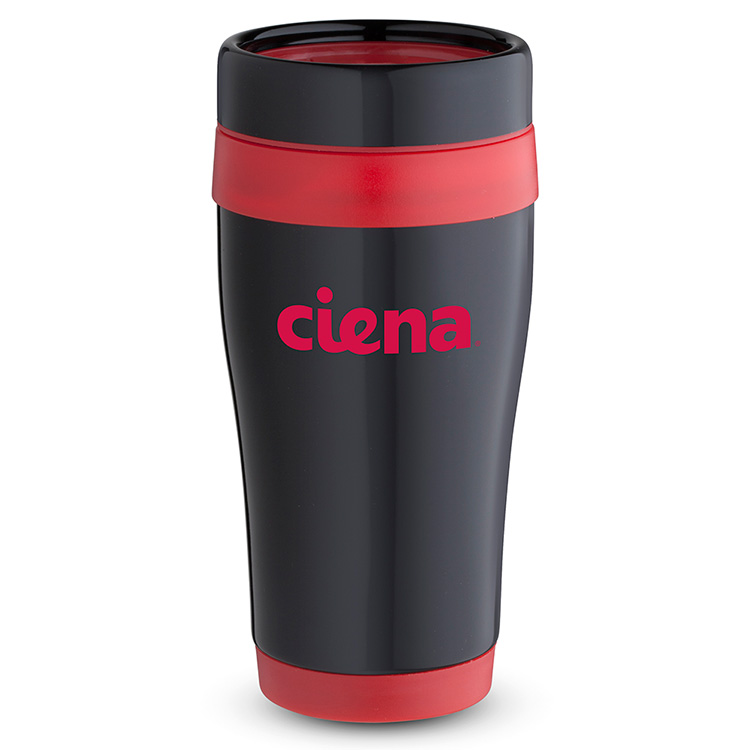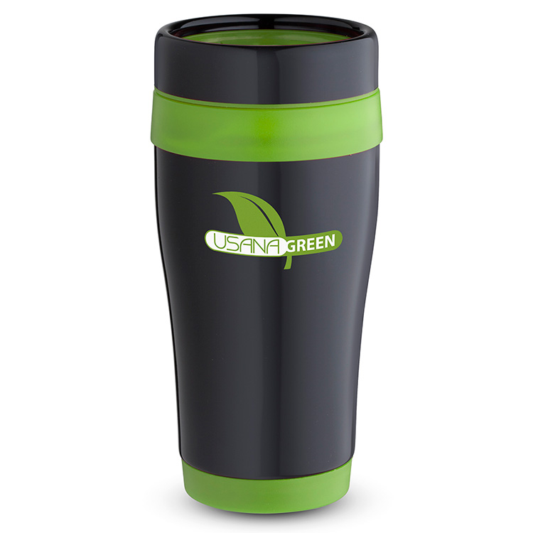 - 16 oz. Stainless steel outer wall with color plastic liner; double wall insulation; stainless / plastic screw on lid with slide lock prevents spills. Not microwave or dishwasher safe.