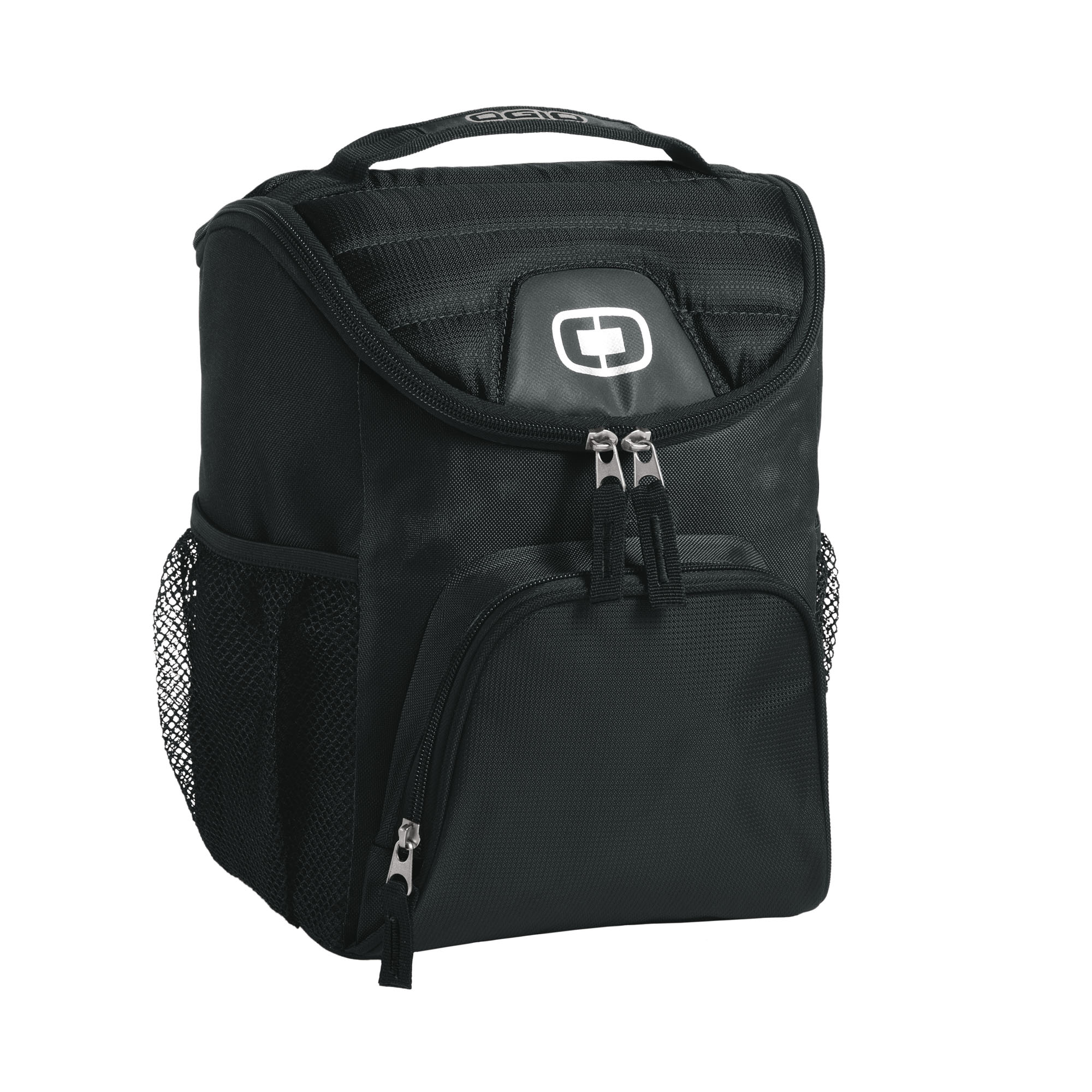 Zippered, insulated main compartment holds 6-12 12-ounce cans