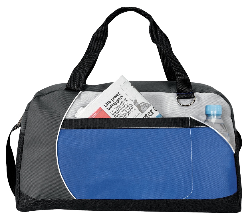 - Throw this duffel over your shoulder and go. It sports a front slip pocket, a water bottle pocket, and the option to carry it with the sewn grip handles or the shoulder strap.