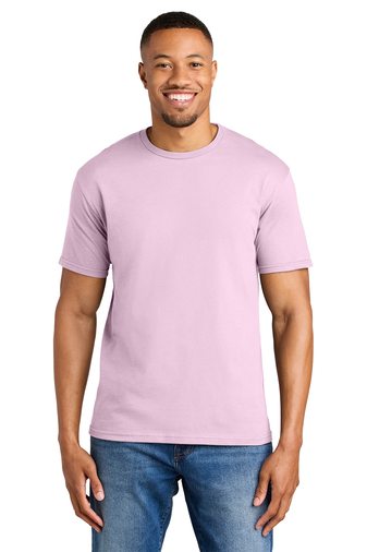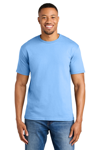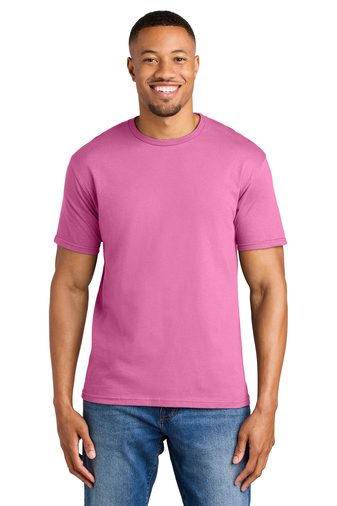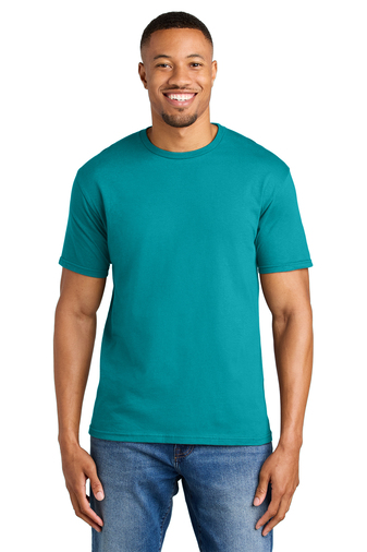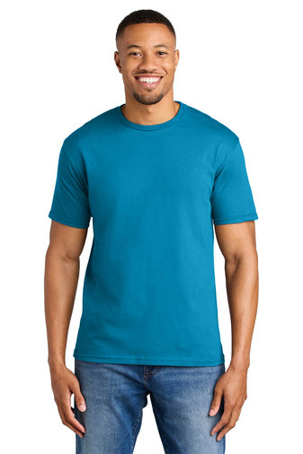 90/10 ring spun cotton/poly (Antique Cherry Red, Antique Heliconia, Antique Sapphire, and Sport Grey)