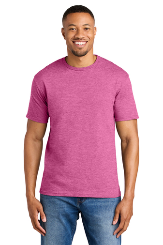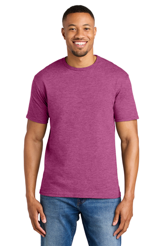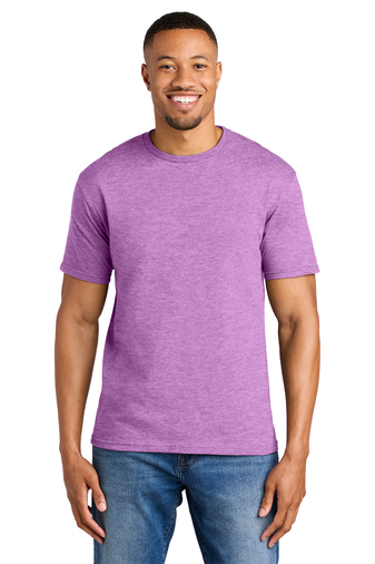 65/35 poly/ring spun cotton (Dark Heather, Heather Berry, Heather Cardinal, Heather Galapagos Blue, Heather Heliconia, Heather Indigo, Heather Irish Green, Heather Maroon, Heather Military Green, Heather Navy, Heather Orange, Heather Purple, Heather Radiant Orchid, Heather Royal, Heather Red and Heather Sapphire)