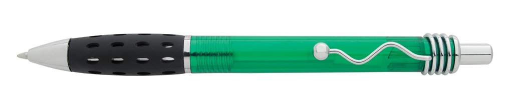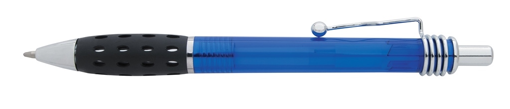 - Translucent barrel colors and a funky clip design contribute to the whimsical feel of this pen. A rubber grip with oval cutouts keeps the untraditional style going and makes for a comfortable writing experience.